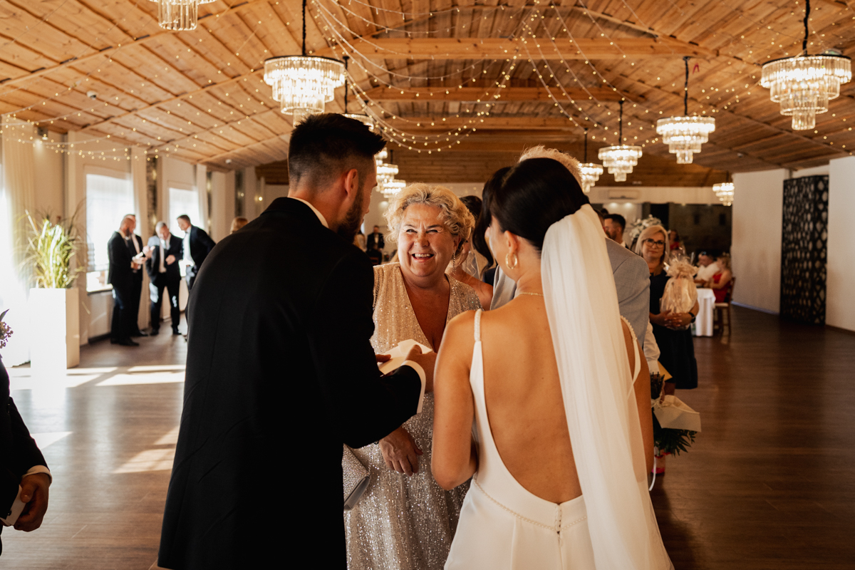 I rzeczywiście, nie poszliśmy na te zimne ognie, ani o 22 ani w ogóle, bo Dominika i Piotrek to jedna z tych par, które w ich wielkim dniu nic nie muszą i ja to przeogromnie szanuję. Bo w gruncie rzeczy o to chyba chodzi w dniu ślubu, by był wymarzony i spędzony totalnie po Waszemu – bez checklisty rzeczy do odhaczenia, bez listy fotograficznych trendów i piosenek które muszą być zagrane oraz tych, które są zakazane.